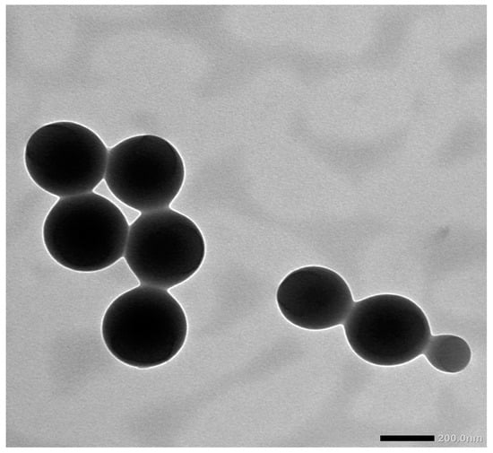 Transmission electron microscopy image of CAPE-PEG–PLGA NPs showing their particle size.