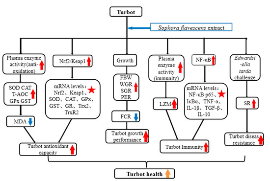 Chicago/Turabian StyleHou, Yuqing, Xuezheng Gao, Xueying Shi, Na Dong, Tongtong Yue, Peiyu Zhang, and Haiyan Liu. 2023. "Dietary Supplementation of Sophora flavescens Root Extract Improved the Growth Performance, Antioxidant Capacity, Innate Immunity, and Disease Resistance against Edwardsiella tarda Challenge in Turbot (Scophthalmus maximus)" Antioxidants 12, no. 1: 69. https://doi.org/10.3390/antiox12010069