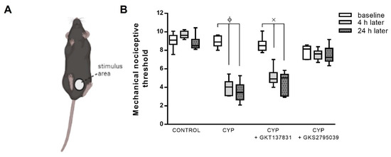 3.5. Pain Induced by CYP Was Fully Inhibited by GSK2795039, but Not by GKT137831