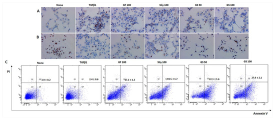 For liver fibrosis condition, it was pretreated with GF, silymarin, and GS for 6 h. After, LX-2 cells were activated by transforming growth factor (TGF)–β1 (10 ng/mL) for 18 h. IHC analysis using HepG2 or LX-2 cells was performed in the same manner as in previous studies according to standard protocols [24].