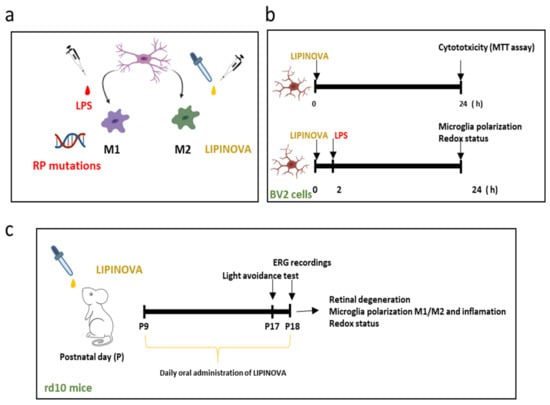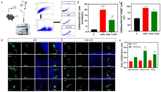 - Zhou, T.; Huang, Z.; Sun, X.; Zhu, X.; Zhou, L.; Li, M.; Cheng, B.; Liu, X.; He, C. Microglia Polarization with M1/M2 Phenotype Changes in rd1 Mouse Model of Retinal Degeneration. Front. Neuroanat. 2017, 11, 77. [Google Scholar] [CrossRef]