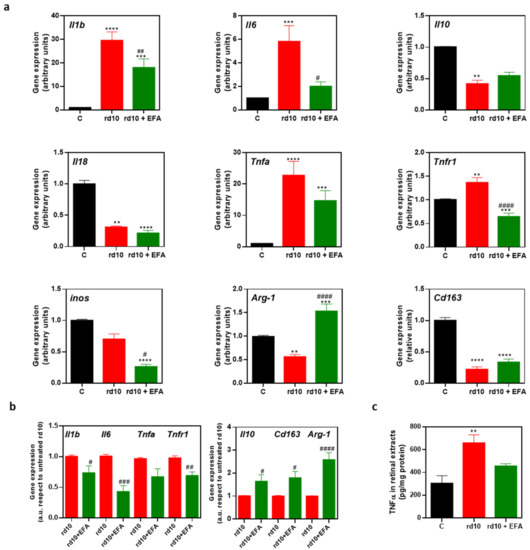 | Marker | C Mean (SEM) | rd10 Mean (SEM) | rd10 + EFA Mean (SEM) |