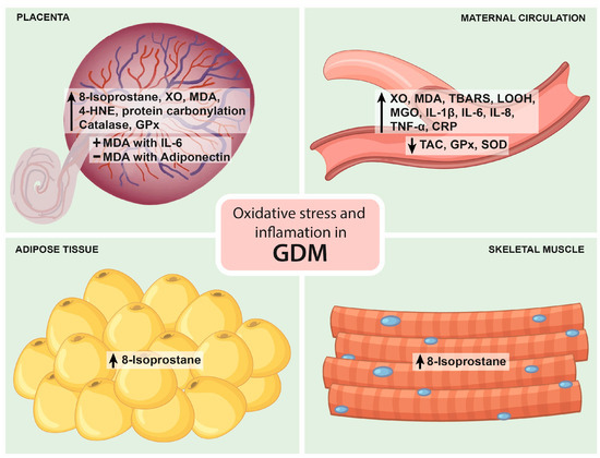 Figure 2 summarizes the main findings on oxidative stress and inflammation in GDM.