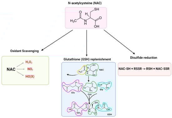 NAC is one of the most used antioxidants in clinical practice to date [16,17,36]. There has been a growing interest over the past few decades to use NAC as a potential treatment for a wide range of diseases and disorders in which oxidative stress is suspected to play a role [17,37], including respiratory, cardiovascular, neurodegenerative, liver, kidney, gastrointestinal, and infectious diseases [1].