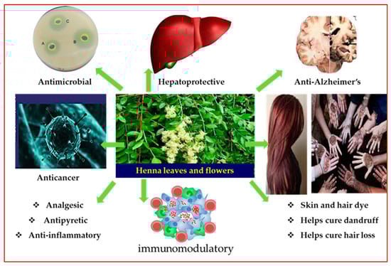 - Zumrutdal, E.; Ozaslan, M.A. Miracle Plant for the Herbal Pharmacy; Henna (Lawsonia Inermis). Int. J. Pharmacol. 2012, 8, 483–489. [Google Scholar] [CrossRef]