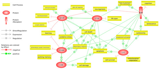 Prolla and his collaborators [40] found a group of genes associated with aging of the cerebellum. These genes are Complement C1q A Chain (C1qa), Cathepsin S (Ctss), Lysozyme C (Lzp-s), Glial Fibrillary Acidic Protein (Gfap), and Complement C4B (C4b).