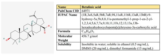 - Lombrea, A.; Scurtu, A.D.; Avram, S.; Pavel, I.Z.; Turks, M.; Lugiņina, J.; Peipiņš, U.; Dehelean, C.A.; Soica, C.; Danciu, C. Anticancer potential of betulonic acid derivatives. Int. J. Mol. Sci. 2021, 22, 3676. [Google Scholar] [CrossRef] [PubMed]