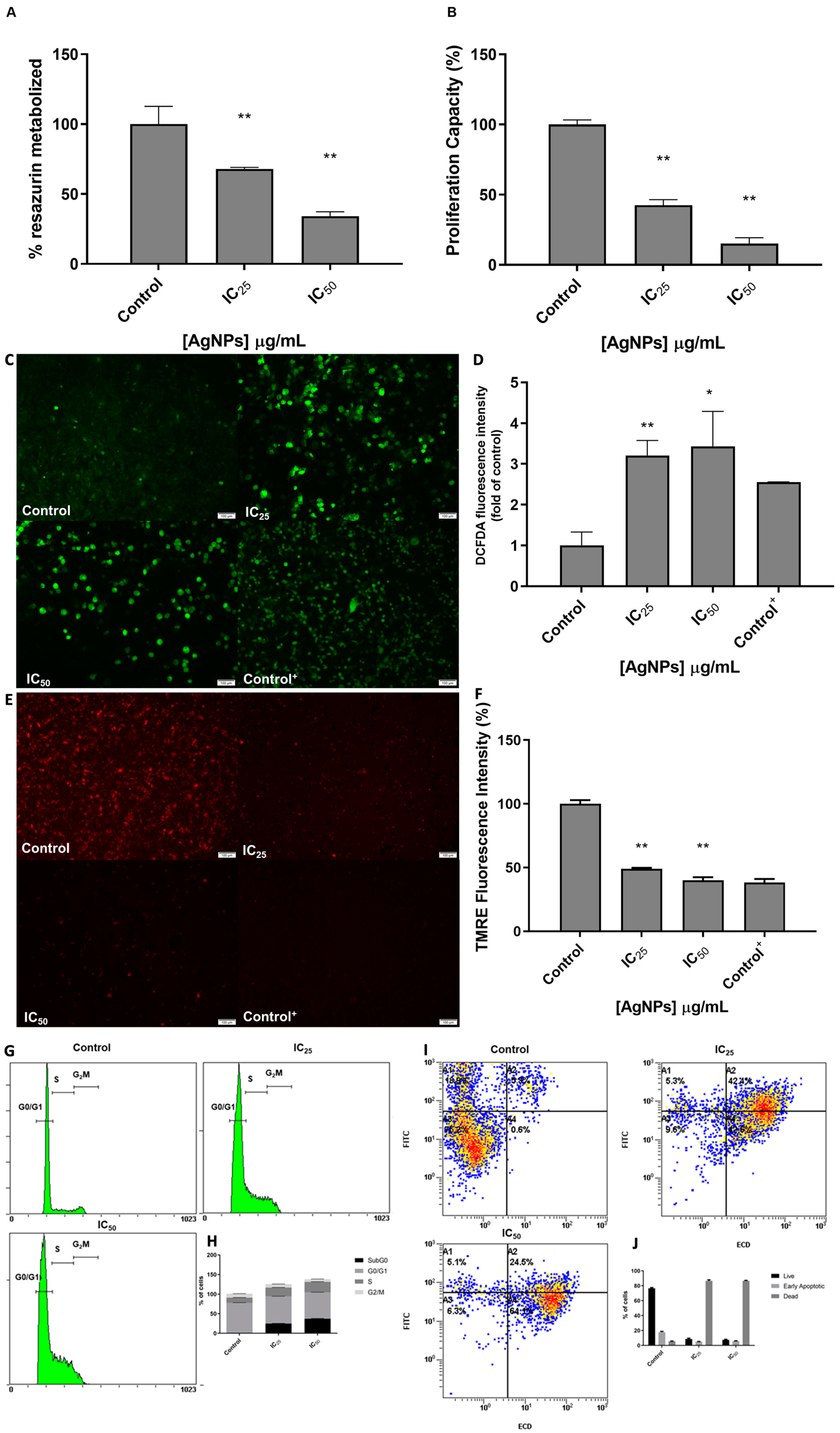 2.3. AgNPs IC25 and IC50 Determination by Resazurin Assay