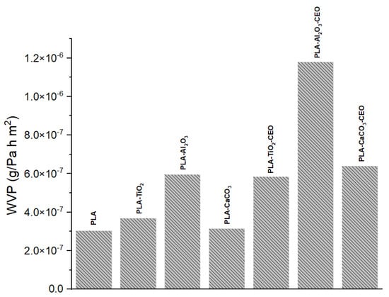 The addition of nanoparticles of TiO2, CaCO3, and Al2O3, both pure and modified with CEO, caused significant changes in the properties of PLA film. These changes improved the mechanical and thermal properties of the PLA film. The water vapor permeability properties of the PLA film indicated an increase due to the release of spaces during film drying. The films exhibited good morphology, with smooth surfaces and even nanoparticle distribution within the polymer network. In these results, we did not observe scratches or fissures.