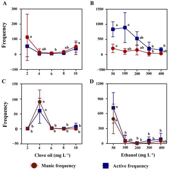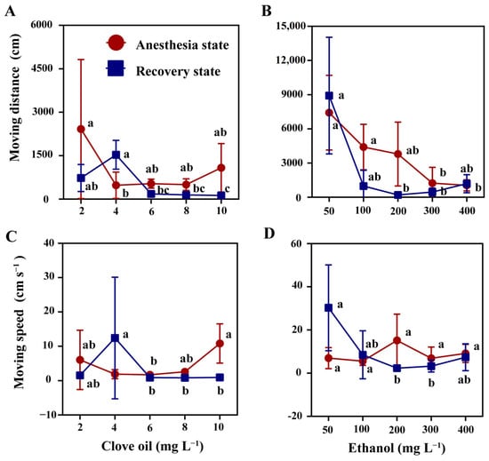 3.2. Effects of Clove Oil and Ethanol Concentration on the Behavior of Mud Crab