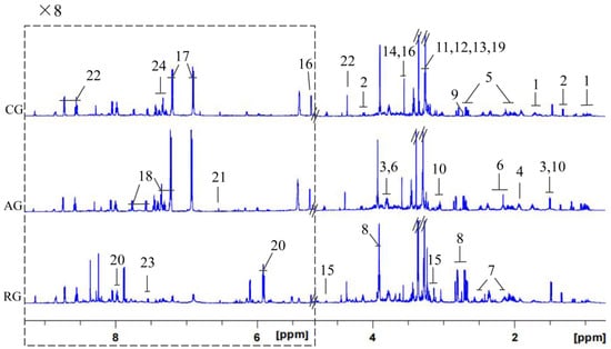 | 7 | Glutamine | αCH, βCH2, γCH2 | 3.77(t), 2.14 (m), 2.46(m) |