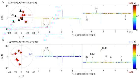 - Cloarec, O.; Dumas, M.E.; Trygg, J.; Craig, A.; Barton, R.H.; Lindon, J.C.; Nicholson, J.K.; Holmes, E. Evaluation of the orthogonal projection on latent structure model limitations caused by chemical shift variability and improved visualization of biomarker changes in 1H NMR spectroscopic metabonomic studies. Anal. Chem. 2005, 77, 517–526. [Google Scholar] [CrossRef]