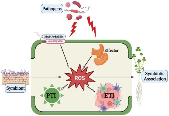 As a summary, the role of ROS in PTI, ETI, and symbiotic association is shown in Figure 2.
