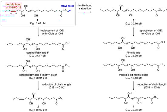 Structure–activity relationship (SARs) for the isolated metabolites (1–4) and other four structurally similar metabolites our group reported previously [].