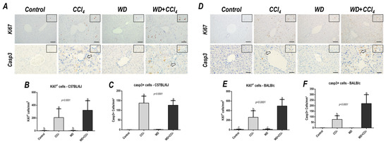 - Shi, Z.; Wakil, A.E.; Rockey, D.C. Strain-Specific Differences in Mouse Hepatic Wound Healing Are Mediated by Divergent T Helper Cytokine Responses. Proc. Natl. Acad. Sci. USA 1997, 94, 10663–10668. [Google Scholar] [CrossRef]