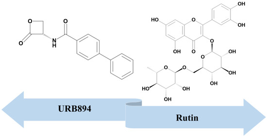Based on these findings and considering the results previously described by our research team [19,24], in this work the PLGA nanoparticles were exploited for the co-delivery of two molecules, rutin and URB894, used as models of natural and synthetic antioxidant compounds, respectively (Figure 1). The choice of this association is based on the fact that the (i) well-known radical scavenging features of rutin could be improved by association to the NAAA inhibitor and (ii) the PLGA systems have already been demonstrated to be useful carriers for the multidrug delivery of various active compounds [25,26].