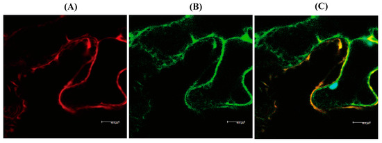 hNaa50 localizes to the cytoplasm in human cells [25]. To determine whether hNaa50 is expressed in the cytoplasm in plants, the hNaa50-mCherry fusion protein was transiently expressed in tobacco leaves, and its localization was investigated by confocal microscopy. As shown in Figure 4, hNaa50-mCherry was expressed in the cytoplasm in tobacco leaves, as indicated by the overlapped expression of the cytoplasmic marker green fluorescent protein (GFP). Therefore, hNaa50 is expressed in the cytoplasm in plants and animals alike.