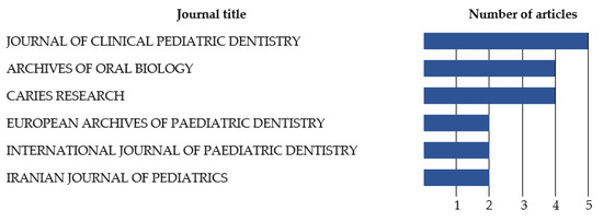 Journals that published at least two articles on dental caries and salivary oxidative stress.