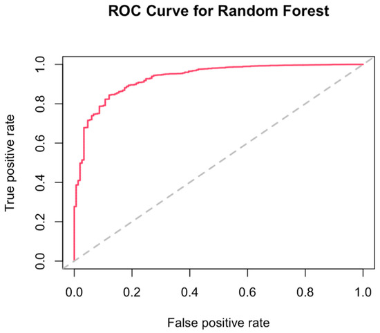 Figure 3 shows the receiver operating characteristic (ROC) curve to illustrate the possibly optimal models of antioxidants combination on lung cancer incidence reduction, grouped by sources of intake. For the dietary intake group, the variable importance ranking was α-carotene, followed by magnesium, vitamin C, vitamin E, lycopene, selenium, lutein, and zeaxanthin, and β-carotene. When the mtry value (the random number used by each tree) equaled three, it had the lowest out-of-bag data error rate. The prediction accuracy was 0.88, and the area under the ROC curve (AUC) was 0.89, which indicated a good fit. The models for the supplemental group and total intake group were less acceptable than the dietary group, with AUC equaling 0.69 for both (Figure A1 and Figure A2).
