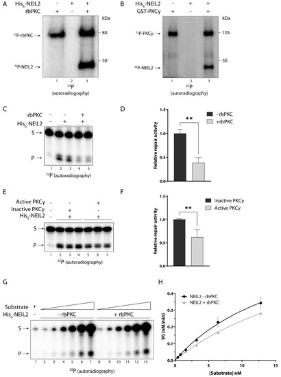 3.3. NEIL2 Is Phosphorylated by PKC and Phosphorylation Decreases the Repair Activity of NEIL2 In Vitro