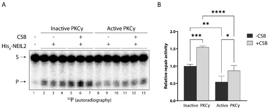 3.4. CSB Stimulates NEIL2 Activity Similarly in the Presence and Absence of PKC Phosphorylation In Vitro