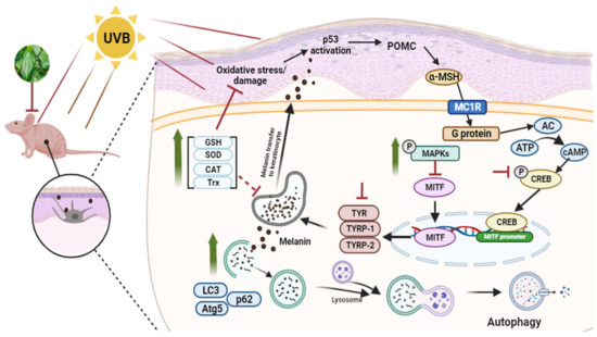- Ho, H.; Ganesan, A.K. The pleiotropic roles of autophagy regulators in melanogenesis. Pigment. Cell Melanoma Res. 2011, 24, 595–604. [Google Scholar] [CrossRef]