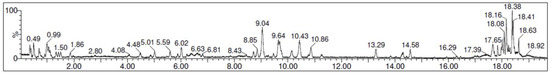 UPLC-QTOF-MS/MS chromatogram of the avocado honey extract.