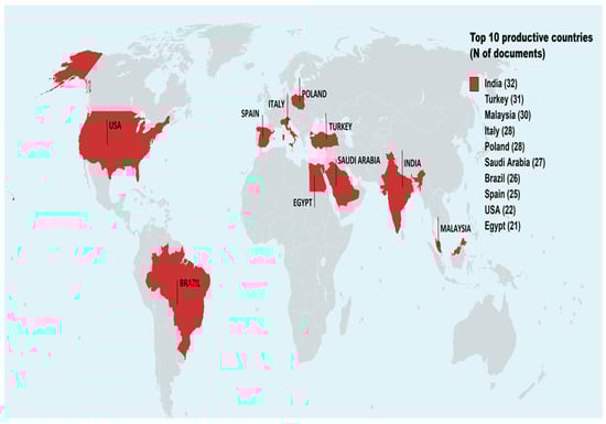 The top ten institutions that published research documents for the abovementioned keywords were also identified. The Università Politecnicadelle Marche and the King Abdulaziz University were the most productive institutions, followed by the University of Rzeszów, the Karadeniz Technical University, and the University of Belgrade-Serbia. Moreover, five European countries, Saudi Arabia, Turkey, Brazil and Thailand, were ranked among the top ten productive research organizations (Table 1).