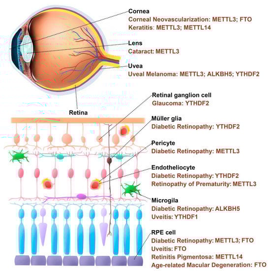 | Eye Diseases | Total m6A Level | Enzymes | Functions |