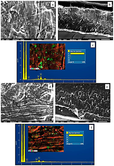 - Giannakas, A.E.; Salmas, C.E.; Moschovas, D.; Zaharioudakis, K.; Georgopoulos, S.; Asimakopoulos, G.; Aktypis, A.; Proestos, C.; Karakassides, A.; Avgeropoulos, A.; et al. The Increase of Soft Cheese Shelf-Life Packaged with Edible Films Based on Novel Hybrid Nanostructures. Gels 2022, 8, 539. [Google Scholar] [CrossRef]