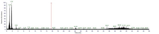 To further identify S4, UHPLC-MS/MS was used. According to the first stage of mass spectrometry (Figure 9), the substances were mainly concentrated in the segments with low mass-to-charge ratio (100–250 m/z). The sequences of peptides were automatically deconvoluted using PepOS 1.0 Integrated Pep-tidomics Analysis Software (Wuyi University, Jiangmen, China), and a total of 65 peptides were identified.