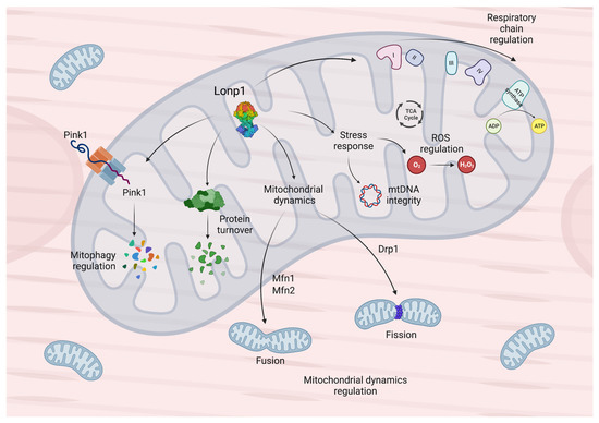Main physiological functions of Lonp1 in the mitochondria.