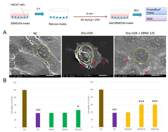 3.4. EBND Protects Air-Drying- and UV- Induced Membrane Damage and Cell Death in HaCaT Cells
