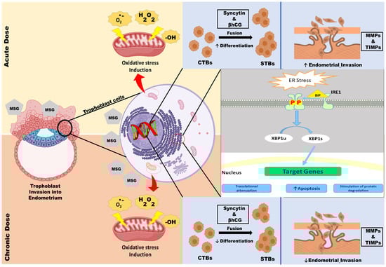 However, the detailed molecular pathogenesis regarding MSG consumption is poorly understood. The placenta is important in sustaining a pregnancy and supporting fetal growth and development. Trophoblast cells constitute the functional and structural components of the placenta to support pregnancy by orchestrating delicate feto-maternal crosstalk and its endocrine function. This involves the exchange of nutrients and waste materials across the feto-placental unit. Trophoblast cells are transiently invasive [35,36] and participate in the remodeling of the maternal uterine matrix and its vasculature to gain access to its nutrient-rich milieu. Successful pregnancy depends on the efficiency of this process, which depends on an efficient trophoblast differentiation program.