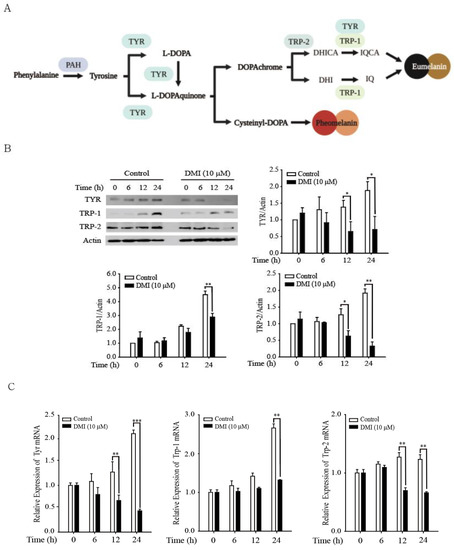 3.3. DMI Inhibits MITF in B16F10 Cells