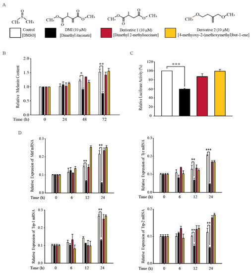 3.5. The α,β-Unsaturated Carbonyl Moiety in DMI Is Required to Inhibit Melanogenesis in B16F10 Cells