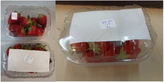 The microbiological quality of strawberry samples was determined by counting aerobic mesophilic bacteria, psychrotrophic bacteria [], and yeasts and molds []. Ten grams of each sample was transferred to 90 mL of peptone water (Oxoid) and homogenized by a homogenizator classic/panoramic (IUL Instruments, Barcelona, Spain) and consequently diluted 10 times. To determine the counts of yeasts and molds, Chloramphenicol Glucose Agar (Biokar, Paris, France) was used, and to determine psychrotropic and aerobic mesophilic bacteria, Plate Count Agar (Biokar, Paris, France) was used. The incubation temperature of agar plates for yeasts and molds was 25 ± 1 °C for 48–72 h, 30 ± 1 °C for 24–72 h for aerobic mesophilic bacteria and 6.5 ± 1 °C for 5 to 10 days for psychrotrophic bacteria. Results were expressed as Log10 colony-forming units (CFU) per gram fresh weight [].