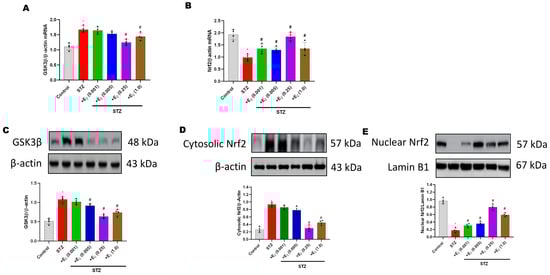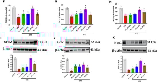 3.4. E2 Supplementation Restored the Levels of GSK-3β, Cytosolic and Nuclear Nrf2, and Phase II Antioxidant Enzymes to Normal Levels in STZ-Treated Diabetic Female Mice