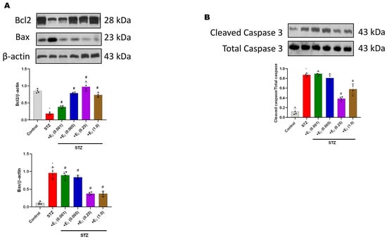 3.7. E2 Supplementation Affected the Expression of Apoptotic Markers Bax, BCL-2, and Caspase 3 in STZ-Induced Diabetic Female Mice