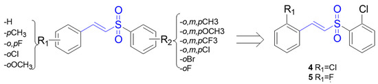 In another study, the structure of compound 1 was modified by introducing a vinyl-sulfoxide or vinyl-sulfone group to the α,β- unsaturated carbonyl entity of chalcone (Figure 6) [70].