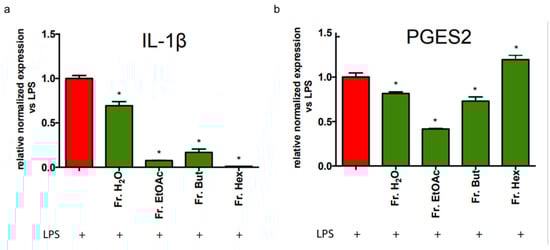 3.6. Evaluation of the Anti-Inflammatory Activity of the Fractions Obtained from Liquid/Liquid Partition of Chestnut Leaf Extract