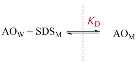 Similar results can be found when considering the partitioning of antioxidants in binary systems other that oil–water. For instance, the association constant KD of antioxidants with, for example, sodium dodecyl sulfate micelles, SDS micellar aggregates, Figure 5, can be, formally, considered similar to the oil–water partition constant PwO, Figure 1, because both are two-state systems where the antioxidant is located in the aqueous or in the micellar phases.