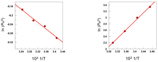 The Gibbs free energy change accompanying the transfer of the antioxidant from one phase (e.g., water) to the other phase (e.g., oil) in equilibrium with each other, at a constant temperature T and pressure, is given by Equation (3), where ΔG, ΔH, and ΔS are the Gibbs free energy, enthalpy, and entropy changes, respectively, and T is the absolute temperature.
