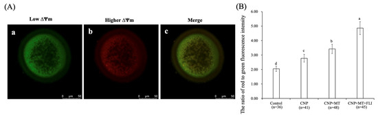 3.6. Effect of the Combination Treatment of CNP, MT, and FLI on the ΔΨm in Bovine Oocytes