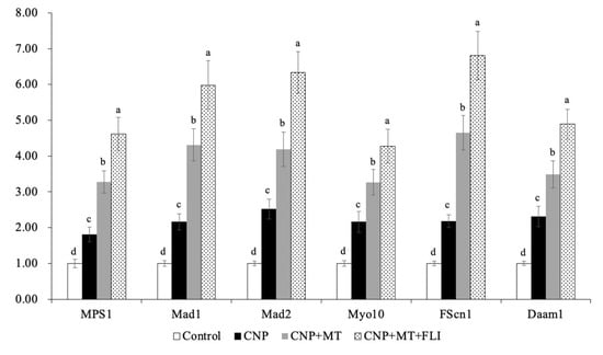 3.5. Effect of the Combination Treatment of CNP, MT, and FLI on TZPs in Bovine Oocytes