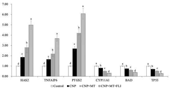 3.3. Effect of the Combination Treatment of CNP, MT, and FLI on Gene Expression in Bovine IVF Blastocysts