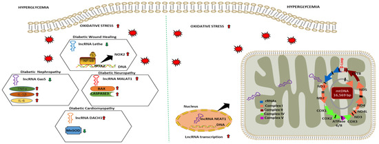 lncRNAs and the mechanisms associated with oxidative stress and mitochondrial function in diabetic complications.
