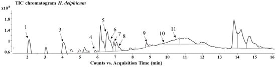 - Kakouri, E.; Kanakis, C.; Trigas, P.; Tarantilis, P.A. Characterization of the chemical composition of Drimia numidica plant parts using high-resolution mass spectrometry: Study of their total phenolic content and antioxidant activity. Anal. Bioanal. Chem. 2019, 411, 3135–3150. [Google Scholar] [CrossRef]