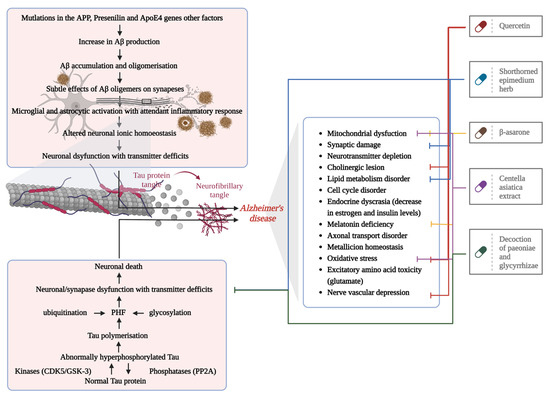 - Liu, R.; Zhang, T.; Zhou, D.; Bai, X.Y.; Zhou, W.L.; Huang, C.; Song, J.; Meng, F.; Wu, C.; Li, L. Quercetin protects against the Aβ(25-35)-induced amnesic injury: Involvement of inactivation of rage-mediated pathway and conservation of the NVU. Neuropharmacology 2013, 67, 419–431. [Google Scholar] [CrossRef]