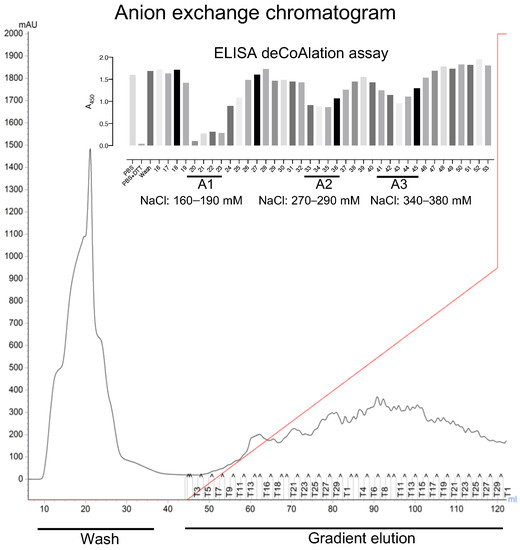 2.4. Mass-Spectrometry Analysis of Purified Fractions That Showed deCoAlation Activity